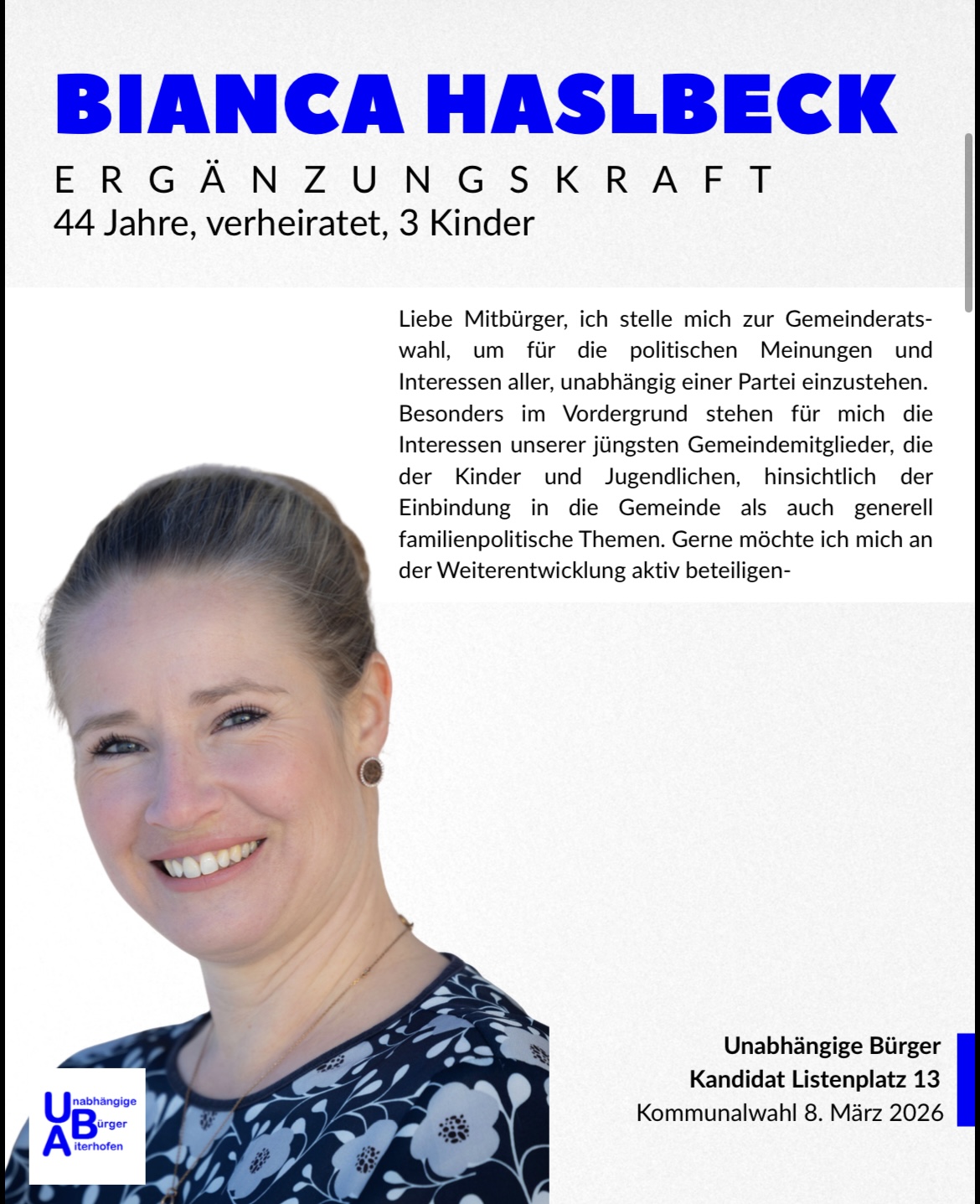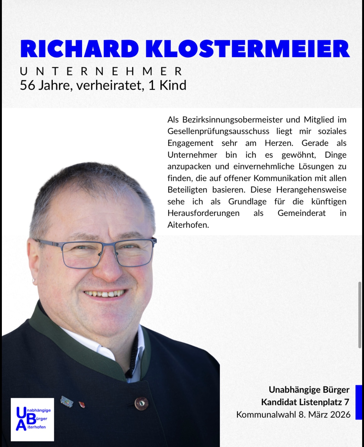• AUFSTELLUNGSVERSAMMLUNG UB- AITERHOFEN ZUR WAHL 2026