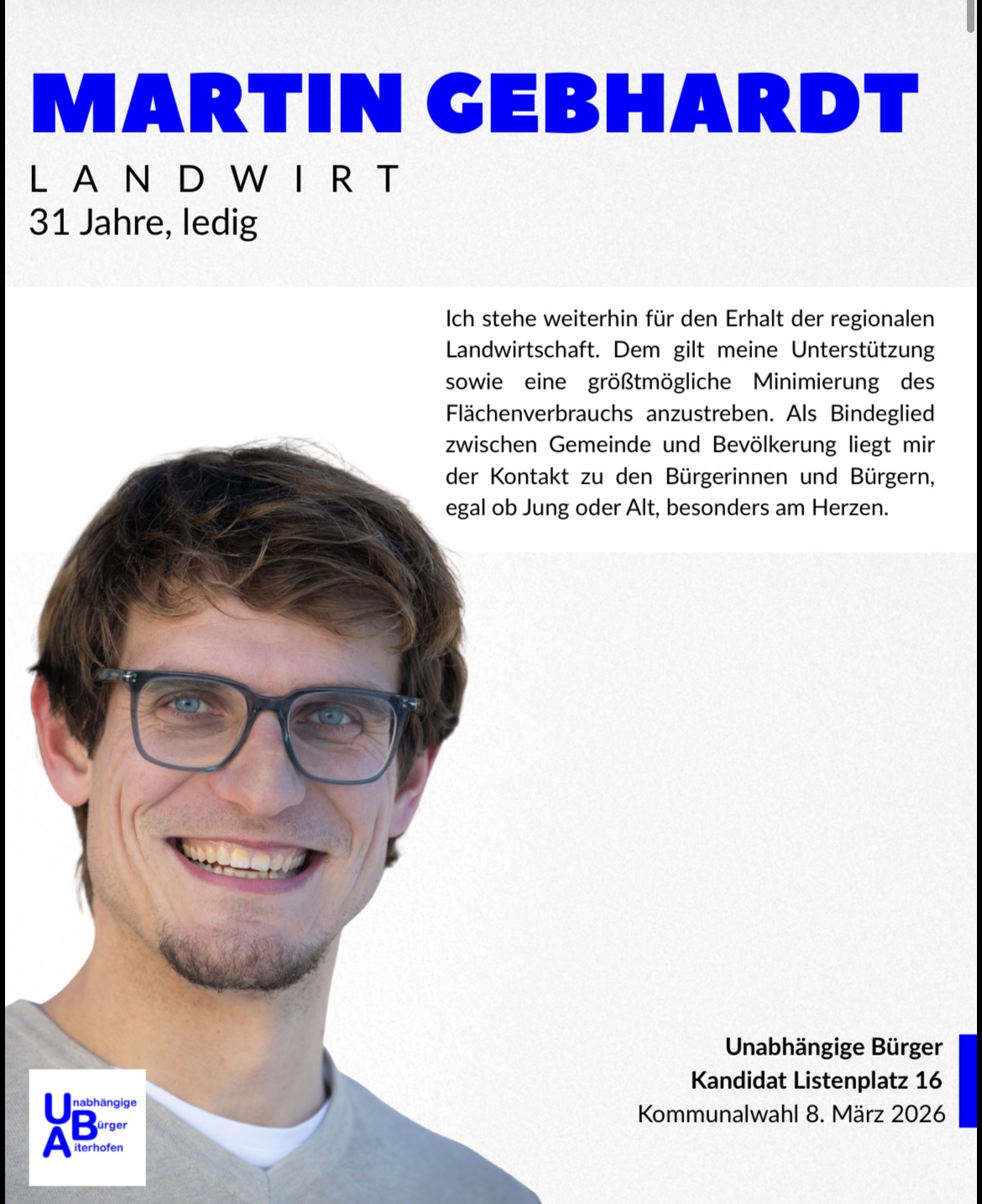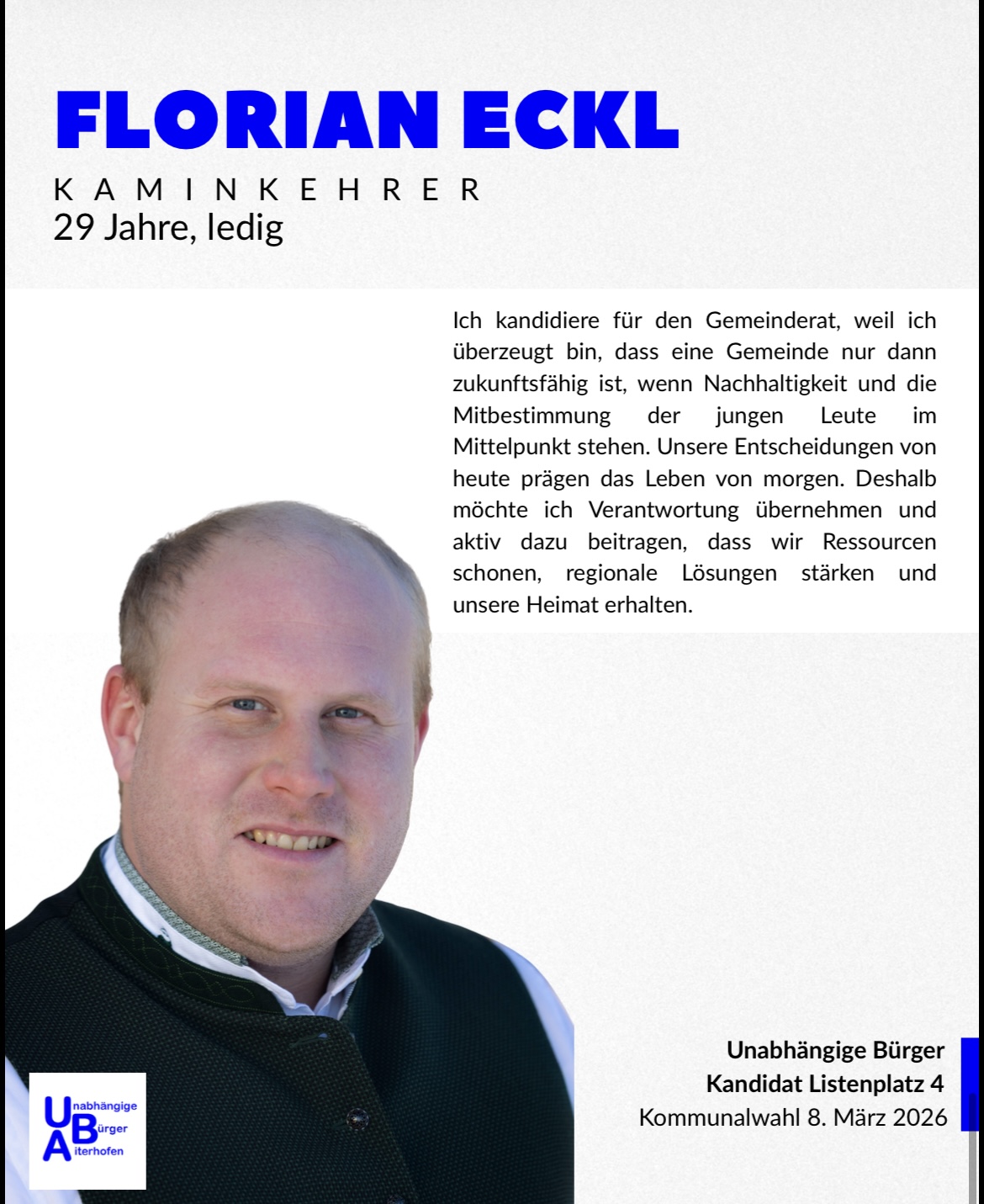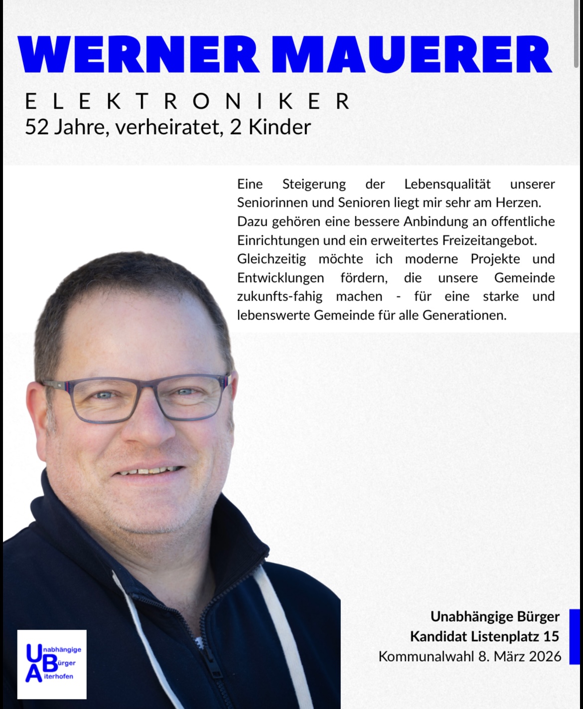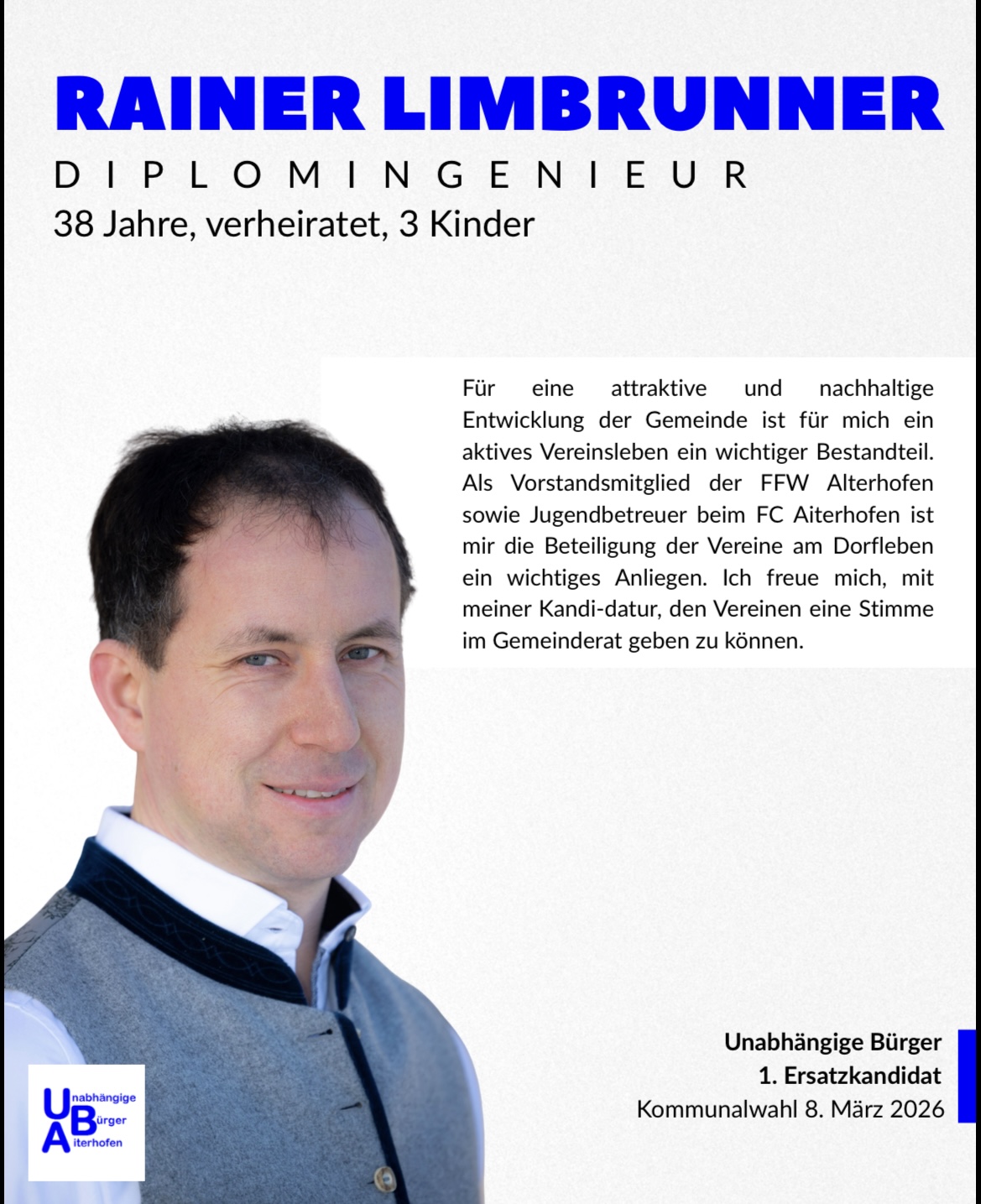Und wir haben einen Anwärter für das Amt des Bürgermeisters. Wir wollen, nach 30 Jahren, dass die Bürgerinnen und Bürger Aiterhofens wieder eine Wahl haben, wen sie zum Bürgermeister bestimmen.