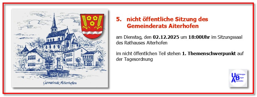 • 04.12.2023 – (Quelle/Link: Gemeinde Aiterhofen)