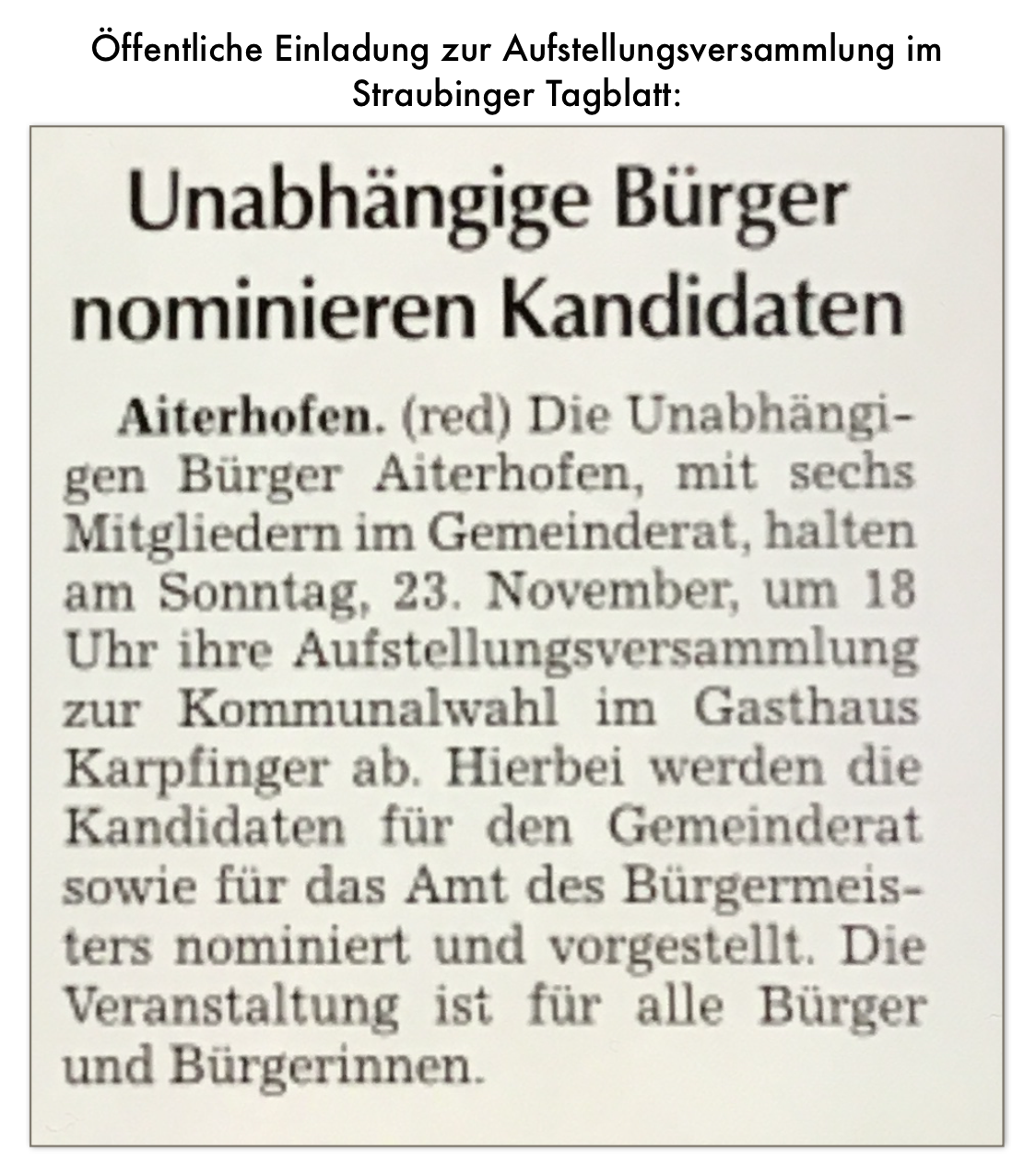 8. MÄRZ 2026 – KOMMUNALWAHL IN AITERHOFEN